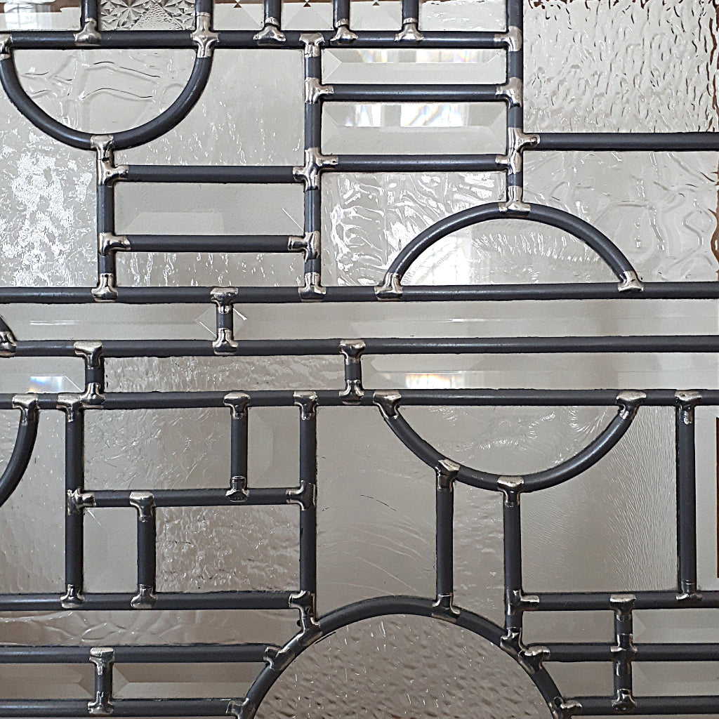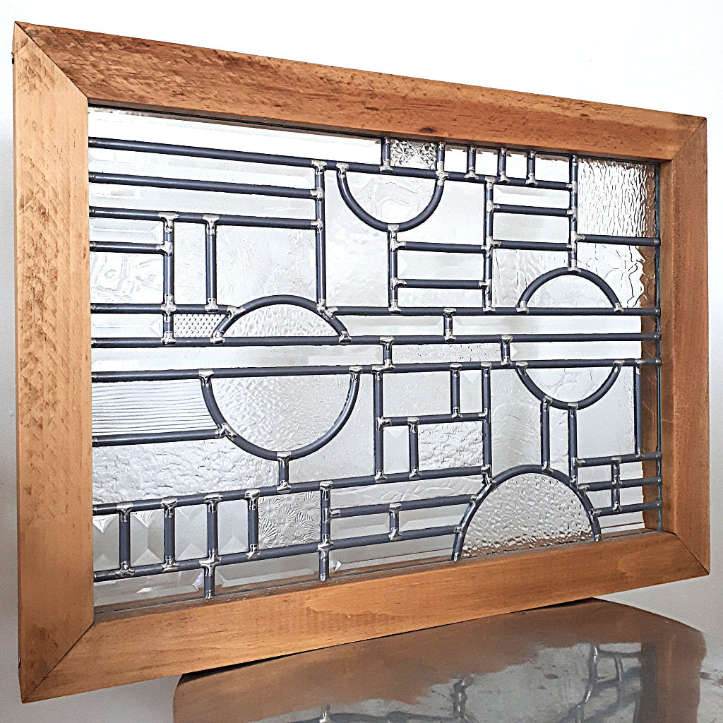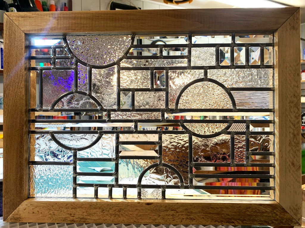 The artist has created a contemporary design, using a multitude of glass textures of vintage and new glass. The exacting work needed for glass of different thicknesses would test the skills of any glass artist. Wayne's designs are always one-of-a-kind, and constantly pushing the boundaries. Enjoy this timeless piece exquisitely made with traditional materials.