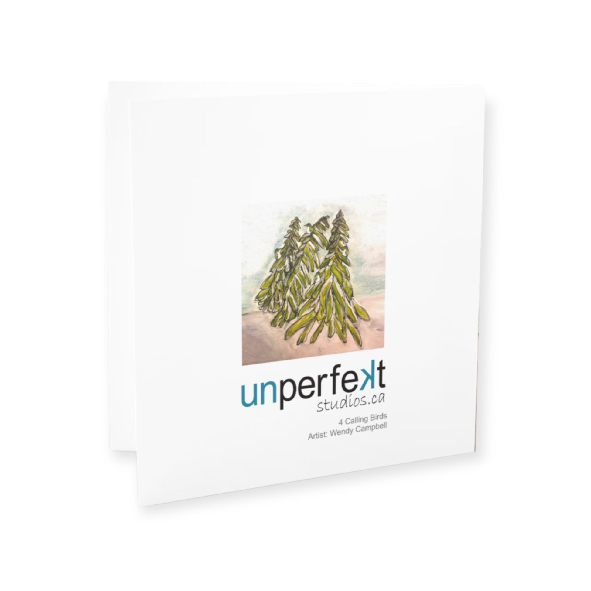 If you look closely at these trees, you'll find four little birds, hence the title "4 Calling Birds" after the popular holiday tune The Twelve Days of Christmas. Choose this card for the bird or tree lover on your list.
