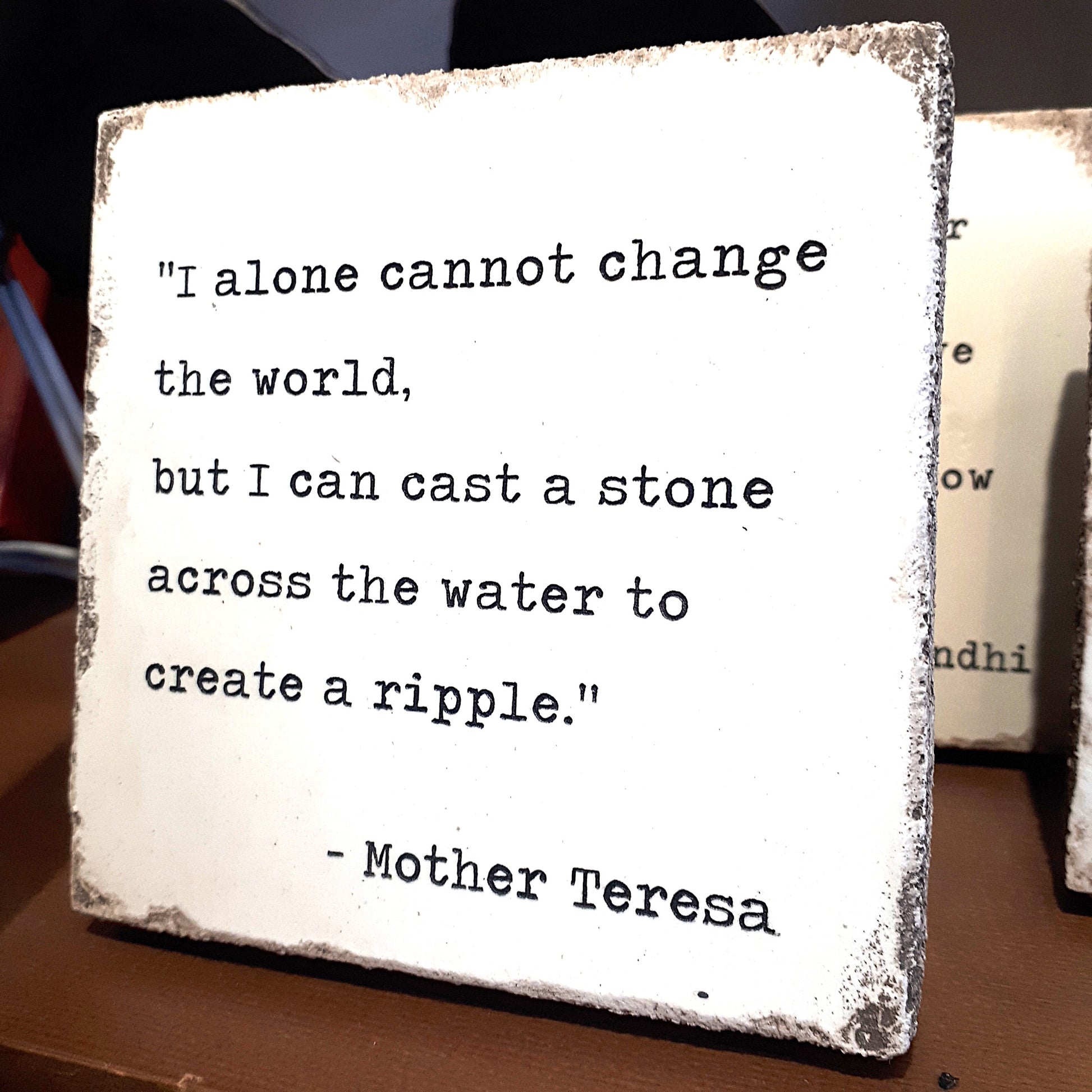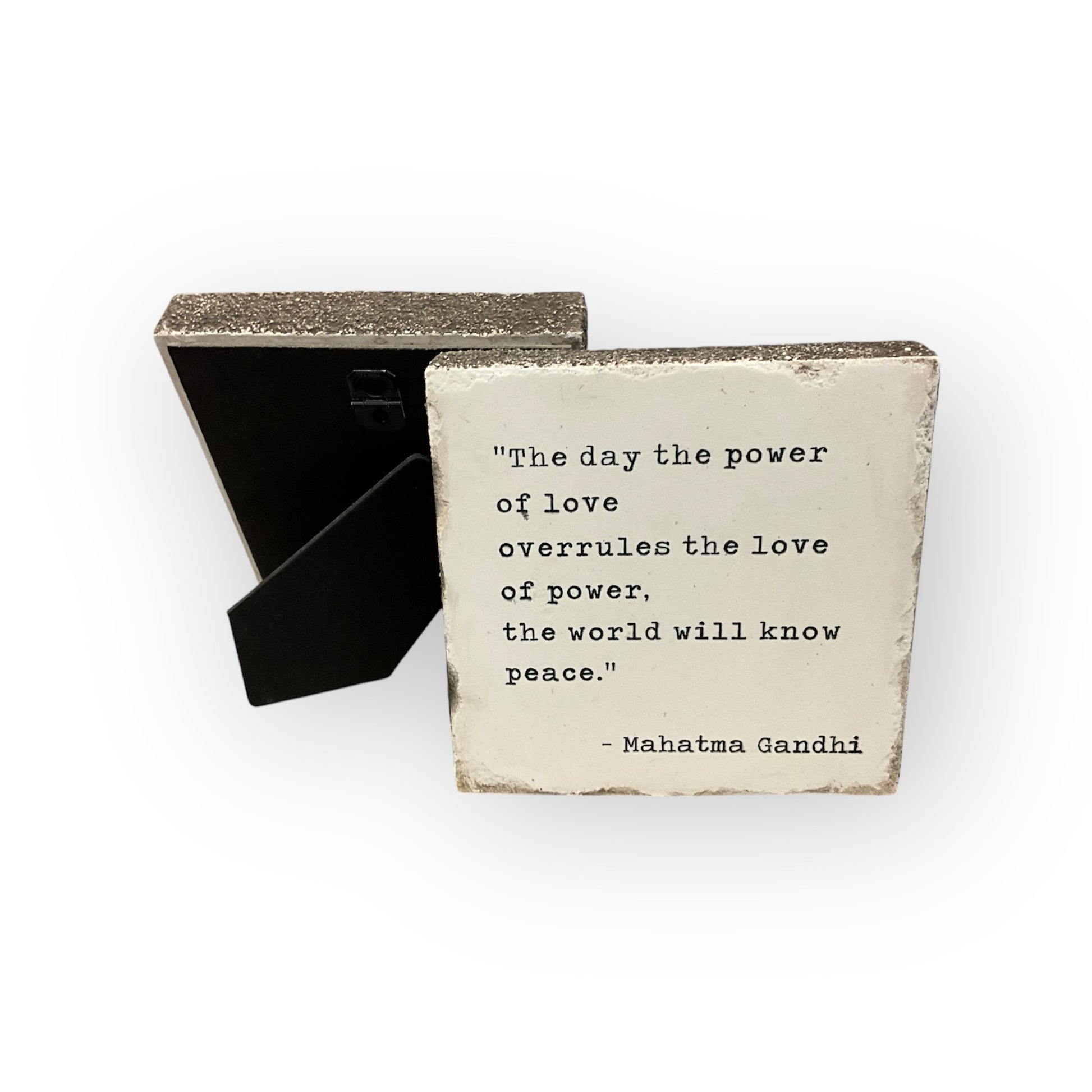 Made by the same artist who carves and casts exquisite animals are these beautifully made quote plaques. Each is 4" x 4" with an encouraging, uplifting quote from people who know of what they speak. The plaques can be hung but also have a fold-out stand on the back allowing the quote to be placed where it will be most appreciated. Made out of hydrostone, the same material used for statues, these plaques are a wonderful quality. Click small arrow to choose from list of quotes.