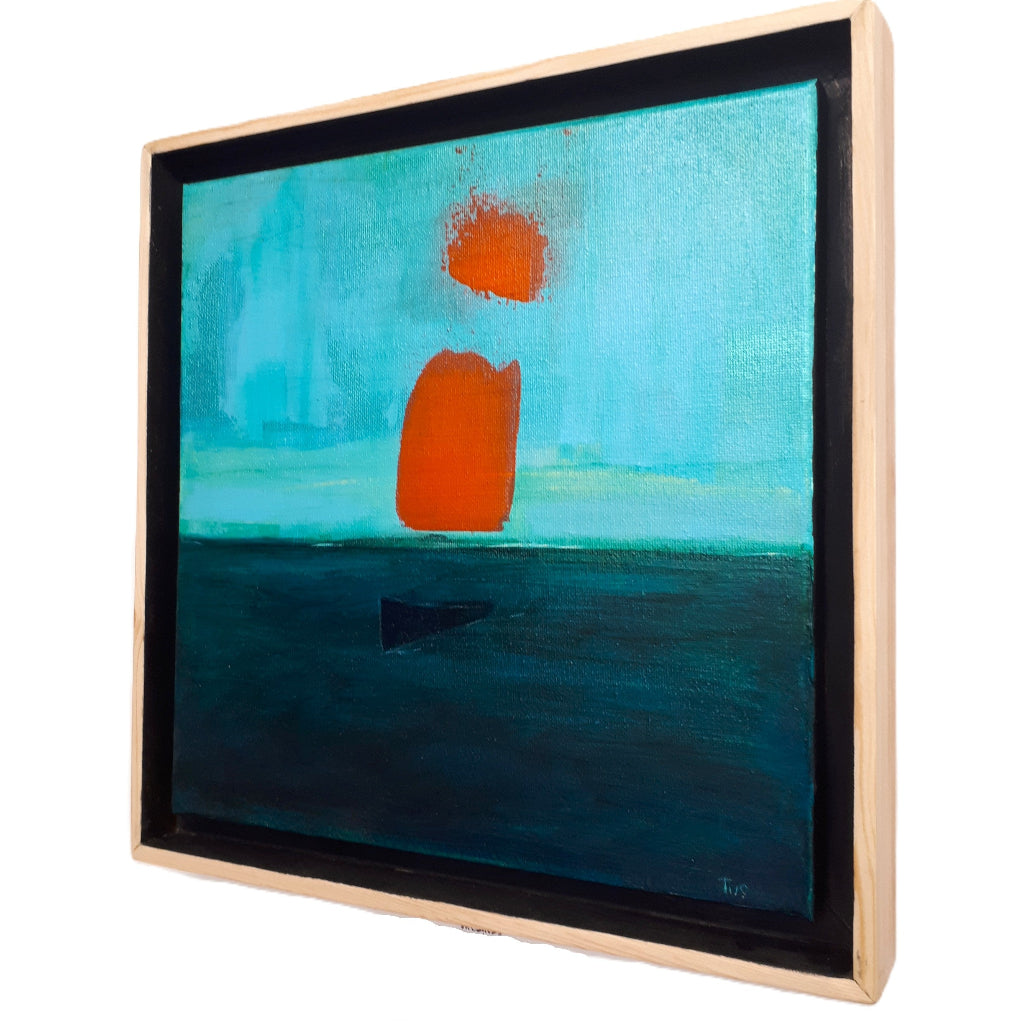 Size: 10” x 10” Framed to 11” x 11” in a solid wood 1 1/2” deep float frame made by the artist. Oil & acrylic on canvas.